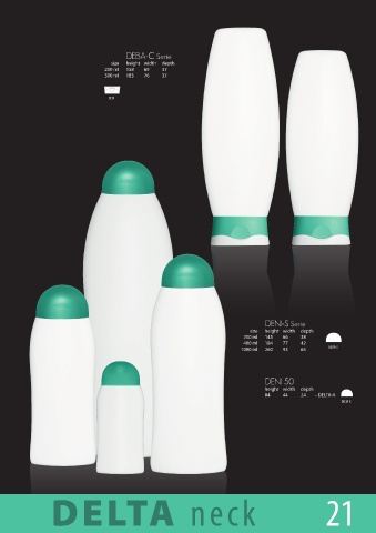DEBA-C Serie size height width depth 200 ml 158 69 37 300 ml 183 76 37 BETA DENI-S Serie size height width depth 250 ml 145 66 38 400 ml 184 77 42 1000 ml 260 93 65 DELTA-S DENI 50 height width depth 84 44 24 – DELTA-K DELTA-K DELTA neck 21