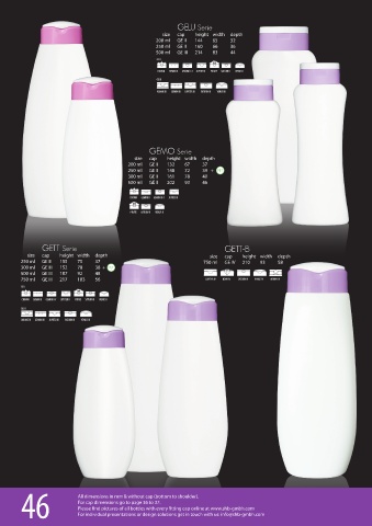 46 All dimensions in mm & without cap (bottom to shoulder). GEMINI neck