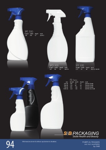 94 All dimensions in mm & without cap (bottom to shoulder). PUMPS & TRIGGERS