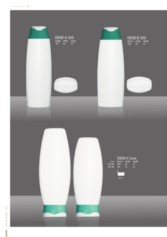 24 DENE-A 300 DENE-B 300 height width depth height width depth 168 64 40 164 68 41 DEBA-C Serie size height width depth 200 ml 158 69 37 300 ml 183 76 37 * BETA SHB PACKAGING - 2024