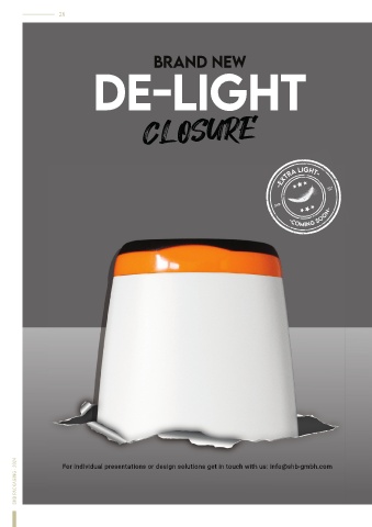 26 BRAND NEW DE-LIGHT CLOSURE SHB PACKAGING - 2024 For individual presentations or design solutions get in touch with us: info@shb-gmbh.com solutions get in t ouch with us: info@shb-gmbh.com F or design or individual presentations