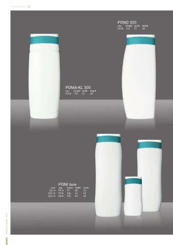 42 PONO 300 cap height width depth PO III 163 77 35 POMA-KL 300 cap height width depth PO III 170 72 38 PONI Serie size cap height width depth 50 ml PO K 74 45 26 200 ml PO II 146 62 34 300 ml PO II 175 65 38 SHB PACKAGING - 2024