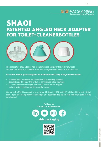 The new SHA Adapter, is available as of now for angle-necked bottles in HDPE and PET.