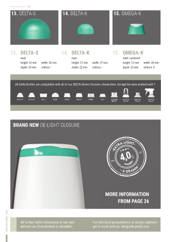 All Delta Bottles are compatible with all of our DELTA-Series Closures shown here. Except the ones marked with *.
